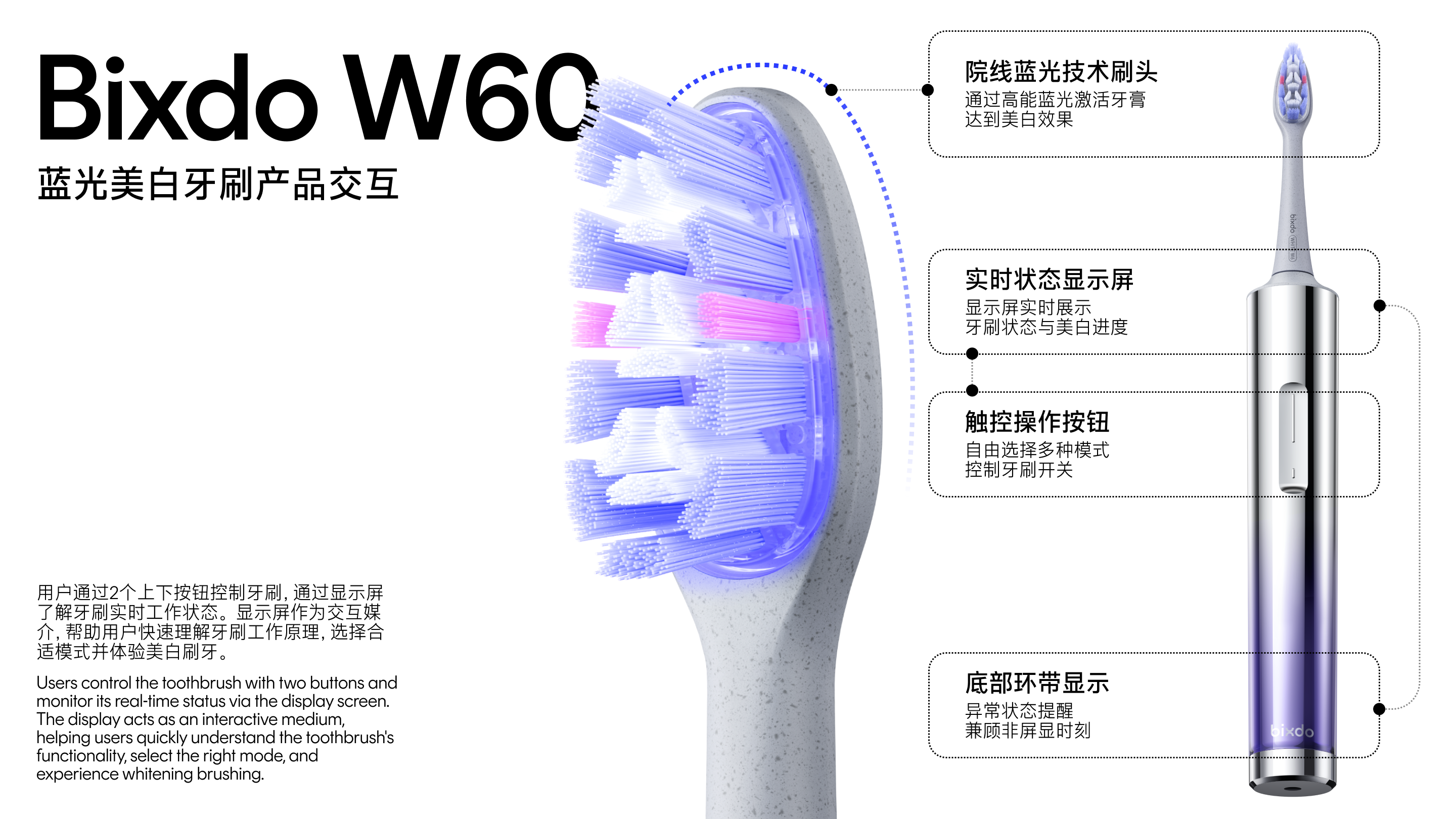 As a leader in the oral irrigator market in China, Bixdo sought to establish its second strategic product line. Following our successful brand-wide revitalization for the brand, Pocca was once again commissioned to shape the user experience for their inaugural "Blue Light Whitening Electric Toothbrush."